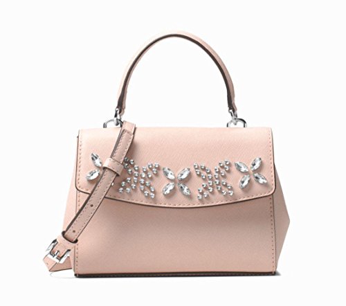 -. Title : Ava Extra-Small Crystal-Embellished Leather Crossbody in Ballet