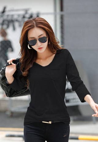 ラフさが普段使いに丁度良いカジュアルカットソーです。広めに開いたVネックが顔回りをすっきりと見せてくれます♪タイトめなので華奢見せ効果も◎