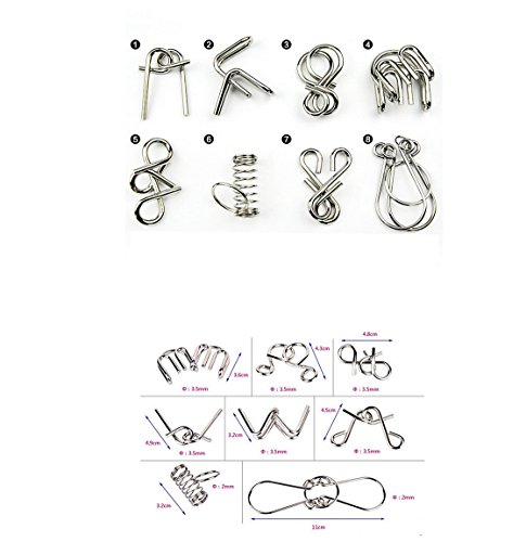 -. Feature : MATERIAL:metal.Last for long / CONTENTS:8 piece metal brain teasers / SUIT FOR 7 yrs or above / LEVEL:middle