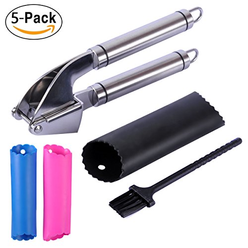 GARLIC PRESS & PEELER SET: 3-Pack silicone tube peeler + a pack of cleaning brush included. Best professional stainless steel gadget. User-friendly, easy to clean and highly durable. Show the garlic who's the boss!