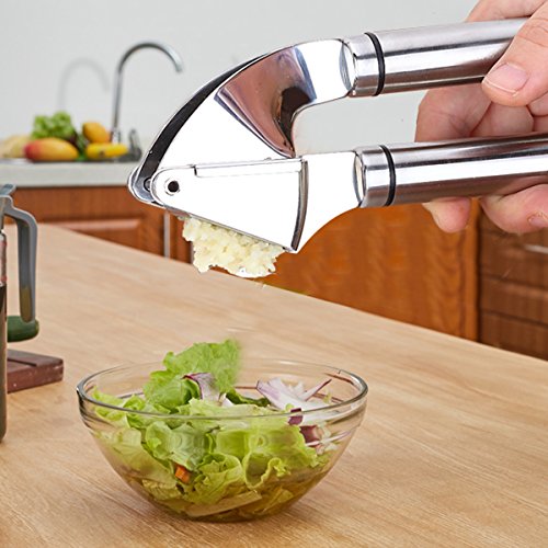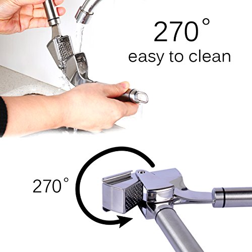 HEAVY DUTY & PROFESSIONAL GRADE: Garlic press also called garlic crusher or garlic mincer is made of stainless steel with FDA approved. It is an incredible tool for any kitchen for easy squeeze and peel any garlic skin.