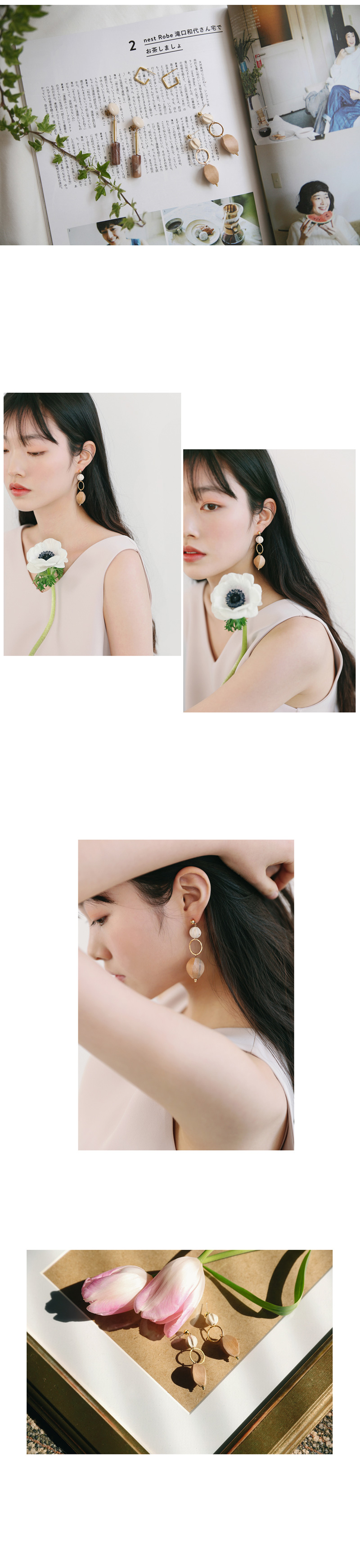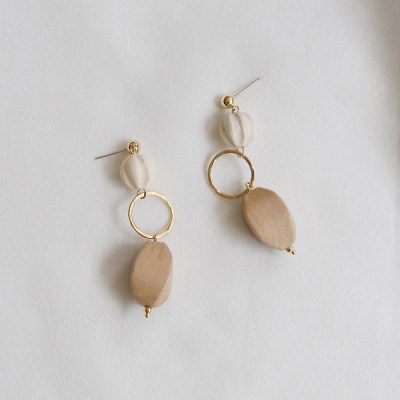 | mild wood earrings 각 다른 쉐입의 우드와 팬던트를 엮어 제작된 내츄럴한 무드의 우드 이어링입니다. 우드의 오가닉한 분위기와 마일드한 톤이 감각적이면서도 수수한 분위기를 연출해줍니다. 손 느낌이 담긴 표면과 담백함이 묻어나는 디자인이 특징으로 다양한 룩의 분위기에 따라 웨어러블하게 매칭되는 제품입니다. 피부 톤에 잘 어울리는 색감과 가벼운 착용감이 좋습니다. 알러지 방지를 위하여 은침으로 제작되었습니다. SIZE : 총 길이 약 6.5cm MATERIAL : earpost - silver, wood, 14k gold plated brass |