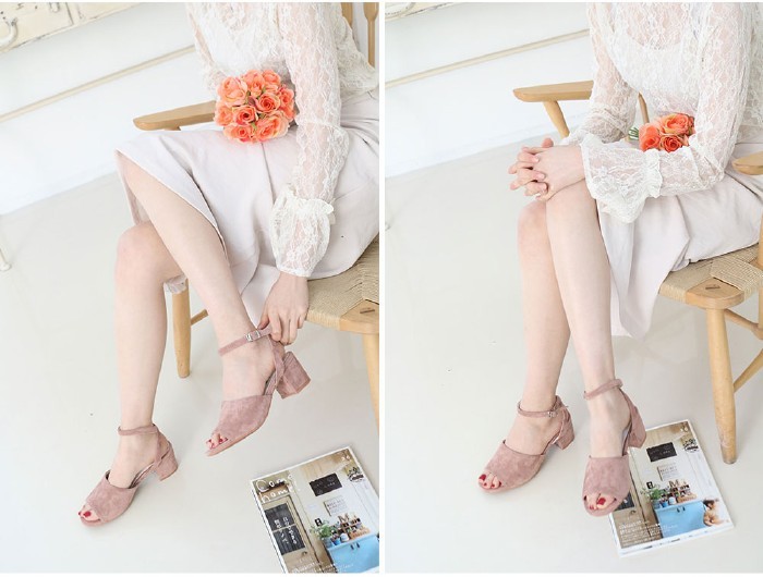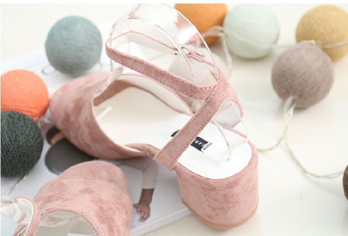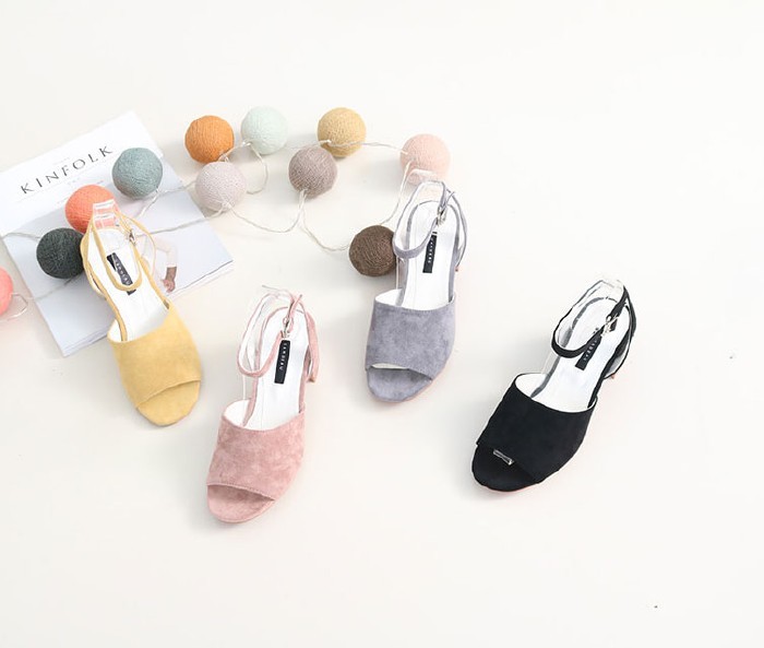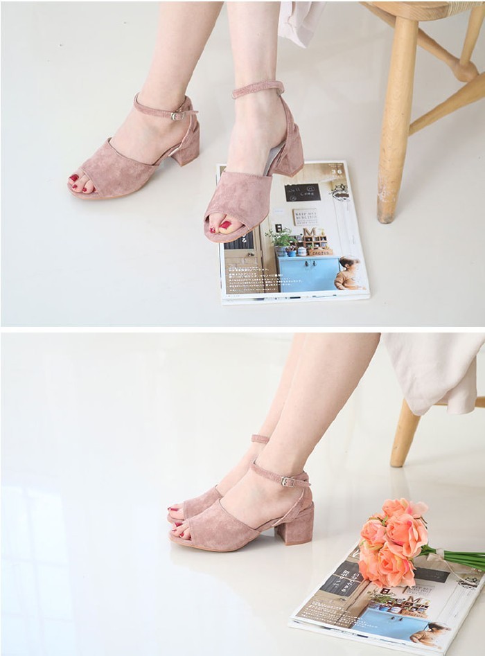 商品名:サンダル レディース 太ヒール チャンキーヒール スエード調 アンクルストラップ 2018 春 ファッション 靴 婦人靴