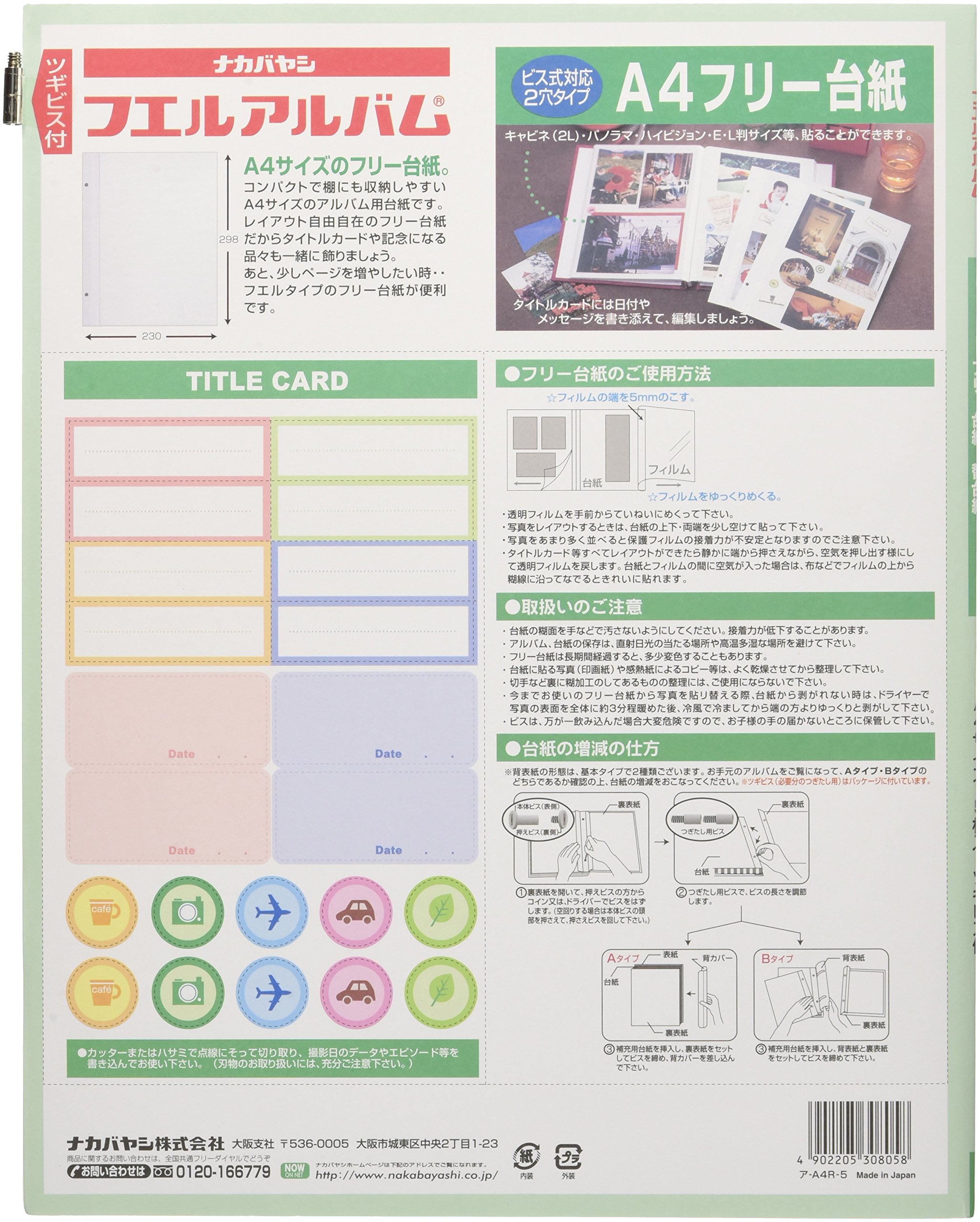 ● Standard: A4 size · 5 free mounts