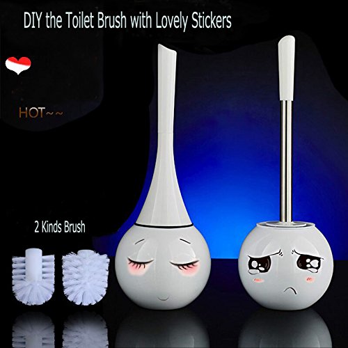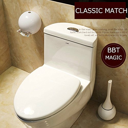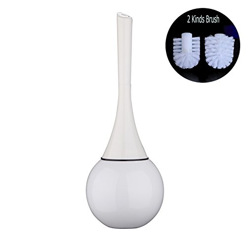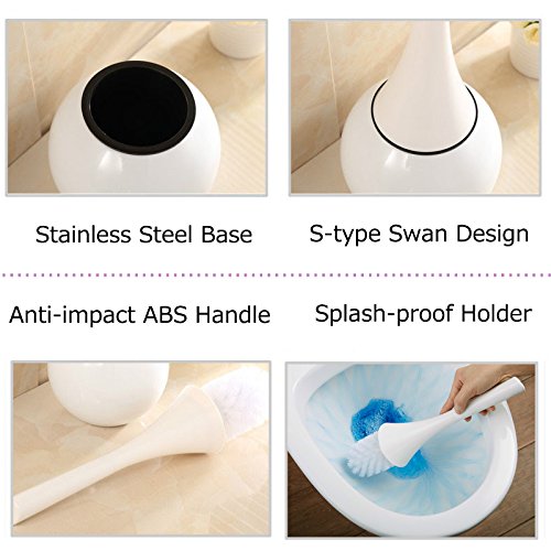 Toilet Brush Holder Stainless Steel Base ABS Handle Replacement Head White