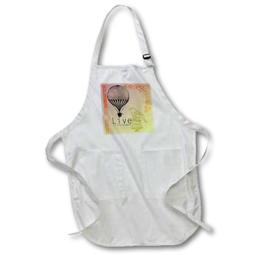 3dRose apr_79179_1 Live in The Moment Vintage Bird and Hot Air Balloon Full Length Apron, 22 by 30-Inch, White