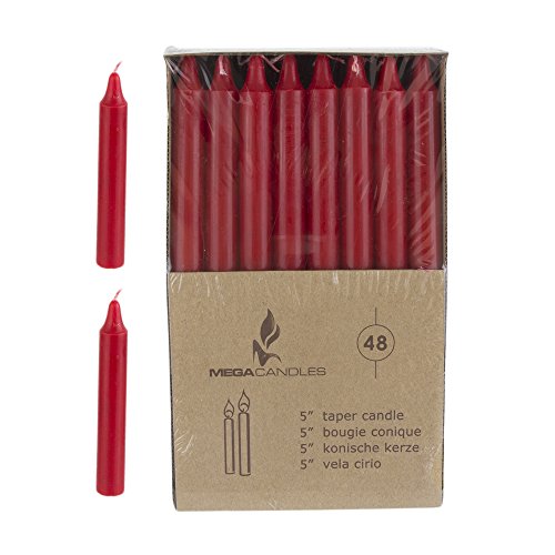 Mega Candles - Unscented 5" Taper Candles - Red, Set of 48