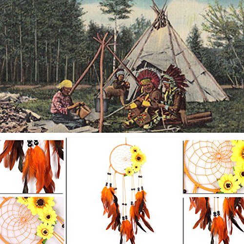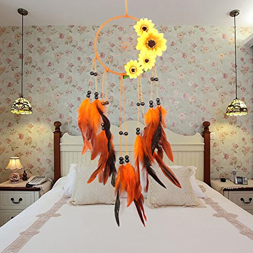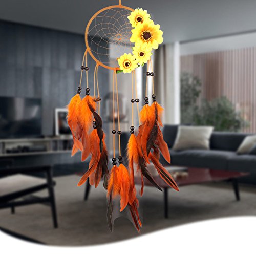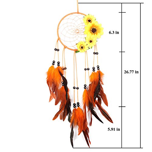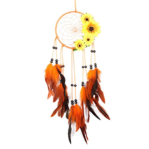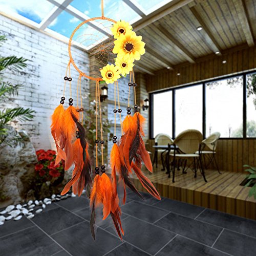 Olpchee Handmade Dream Catchers with Feathers Sunflower Wall Hanging Decoration Ornament Gift for Car, Balcony, Bedroom, Living Room Orange