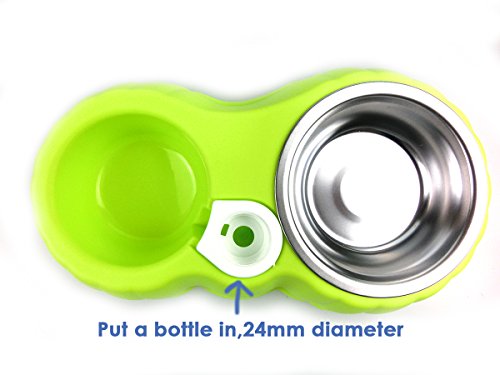 1. AUTOMATIC WATER DISPENSER FEEDER: Holds both food and water and keeps fresh water flowing. This product does not include a bottle, you can find a standard one to use. The diameter of bottle mouth is 24mm.