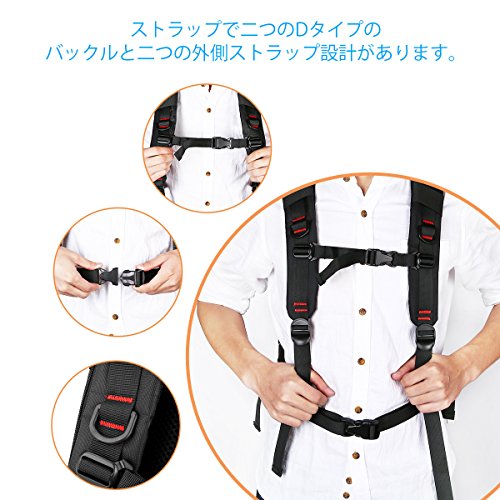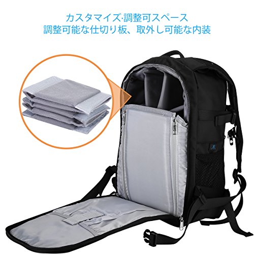 -. Feature : 【サイズ】:容量:30L 重さ:1.6 kg 荷重力:35kg カラー:ブッラク 寸長:45*28*19.5cm  / 【広い対応】多功能を付きカメラバックの大容量バッグです、大変大丈夫で、思うのようにいろいろな場合で使われる。たとえば:日帰りか1泊の登山、遠足、ビジネス用にピッタリです、あるいは、アウトドア、旅行、通勤、通学、防災グッズ、撮影と、様々なシーンにご活用下さい。 / 【驚きな收纳力】30Lの大容量で、カメラ*2、レンズ*4、フラッシュライト*2、14インチのラップトップ*1、iPad*1とほかのアクセサリーが全部収納できます。 / 【調整可スペース】調整可能な仕切り板で、取外し可能な内装は、一眼レフ本体、レンズ、アクセサリーを効率よく収納するためにカスタマイズが可能です。どこでもお使いのデジタルカメラを保護する為に特別に設計される。サイドには収納するポケットがある、三脚取り付きできるので、持ち運び便利。 / 【高品質材料】防水オックスフォ一ド 、ナイロンとポリエステルで作った高品質カメラバック。 通気性よく高品質で防水という機能を持っているポリエステルで作られるし、背筋の解すデザインを採用するし、耐久性あるし、心地いいです。