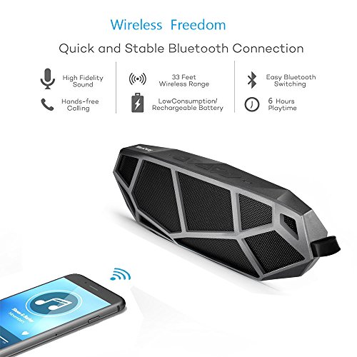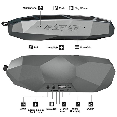 Feature : SUPERIOR SOUND QUALITY - The Q2 speaker's exceptional sound quality is provided by dual high-performance drivers and a passive bass port, which gives dynamic depths to your listening experience and adds crispness to vocals. / LIGHTWEIGHT AND PORTABLE - Palm size, with impressive stylish appearance, weighs just over 1/2 a pound, so you can place it in many locations and can easily take it from one place to the next. Coming with a sturdy metal hook, it is convenient to hang on your backpack. / BLUETOOTH TECHNOLOGY - The Q2 Bluetooth speaker has broad compatibility with solid performance for Android, iPhone, iPad, tablets, smartphones, iPods, MP3, MP4, radio players, and other Bluetooth enabled digital players. 3.5mm AUX jack makes it compatible with non-Bluetooth devices. / LONG PLAYTIME - Built-in Li-Ion 1000 mAh rechargeable battery guarantees up to 6-hour/100-song non-stop playtime. Recharge in just 3-4 hours with included micro USB cable. / MULTIPLE INTERFACE - Versatile in all sorts of audio source output: Bluetooth, microSD/TF card, U-disk, AUX Line-in, and FM radio.