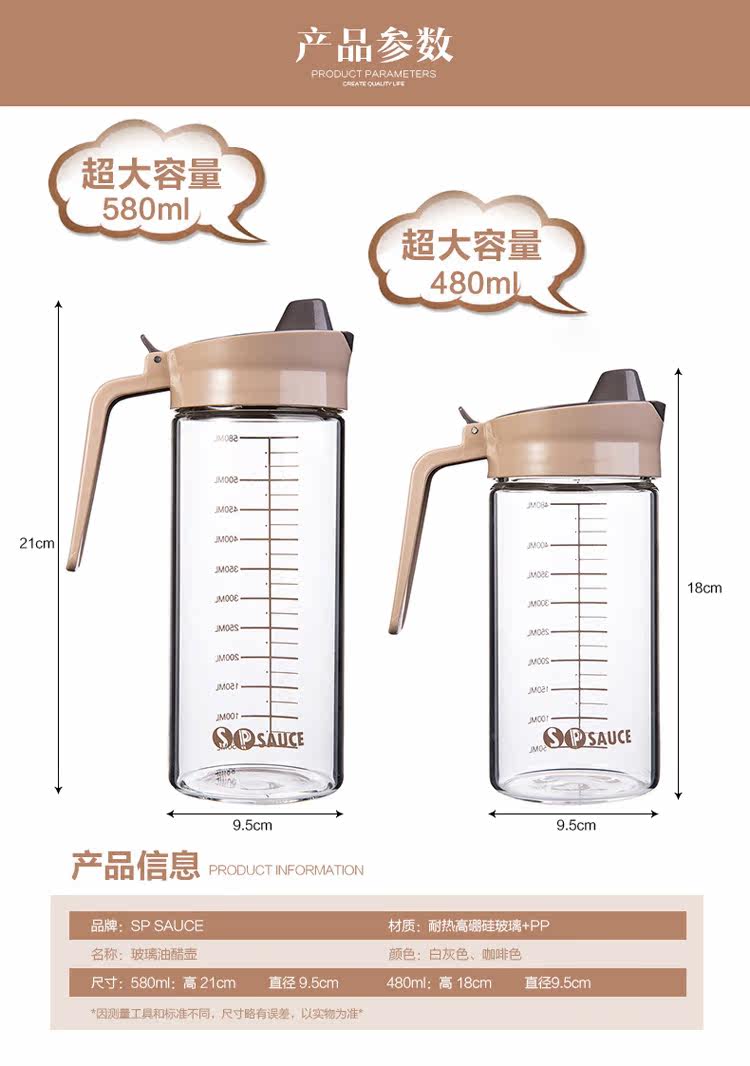 Material: High borosilicate glass + PP