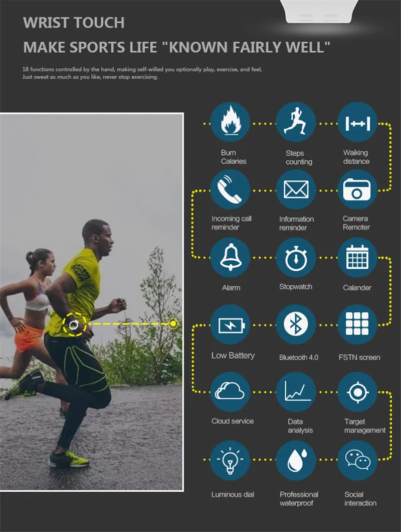 Function:Week,Message Reminder,24 hour instruction,Passometer,Alarm Clock,Noctilucent,Call Reminder,Remote Control