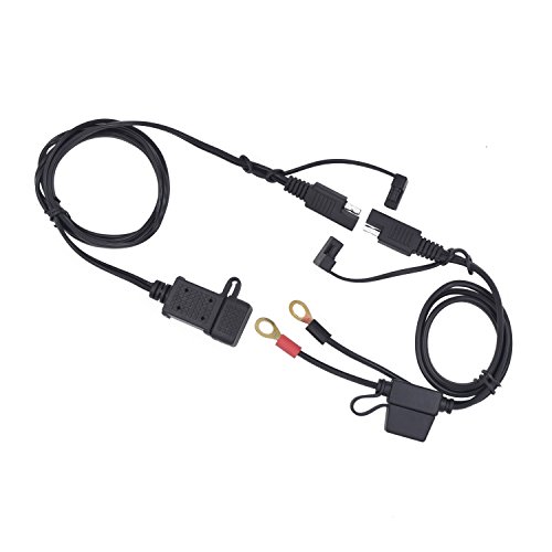 -. Feature : SAFETY RELIABLE CHARGING - made of flame-retardant ABS and PVC materials with 10A inline blade fuse, heat and corrosion resistant that well works at wide voltage range of DC 12-24V, great for almost all motorcycles / WATERPROOF COVER DESIGN - the full-enclosed rubber cover can be easily slapped on to ensure the USB charging port water resistant and dustproof, effectively enhance its lifespan / ALL ROUND USB CHARGER - 2.1A SAE to USB adapter, perfectly suitable for charging smartphone/iPhone/iPad/MP3/MP4/GPS/Camera/Bluetooth device, etc) / QUICK RELEASE CONNECTION - Standard SAE Quick Release Connectors for convenient connection. You can also connect the USB charger directly to your existing battery tender pigtails.OR use the long Ring Terminal Cable to get power from the battery for any other devices with SAE connectors. / SIMPLE MOUNT - designed with 8 zip-tie holes and 1 support for flexible surface mounting, it is also can be stuck on any flat surface with adhesive tape,Plug-N-Play!