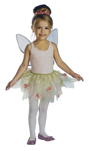 -. Feature : Nylon and polyester wings with swirl accents / Tulle and nylon skirt with sparkling leaf design / Flower patterns with pink petals on tutu / Matching pink flower headband included