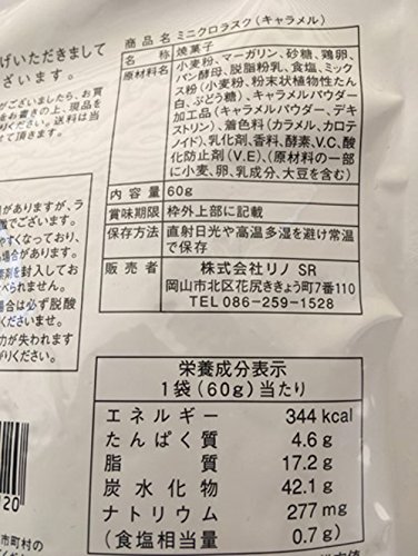 原材料:小麦粉、マーガリン、砂糖、鶏卵、パン酵母、脱脂粉乳、食塩、ミックス粉(小麦粉、粉末状植物性たん白、ぶどう糖)、キャラメルパウダー加工品(キャラメルパウダー、デキストリン)、着色料(カラメル、カロテノイド)乳化剤、香料、酵素、V.C、酸化防止剤(V.E)、(原材料の一部に小麦、卵、乳成分、大豆を含む)
