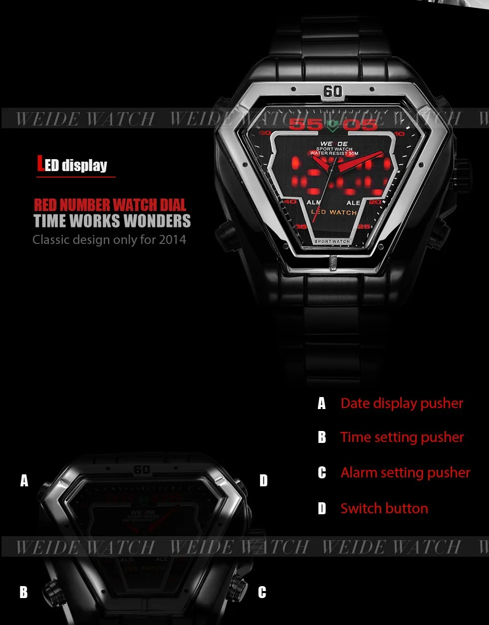 - 특징: 경보,뒤 빛,물 저항하는,다수 시간대,자동 날짜,발광 다이오드 표시
