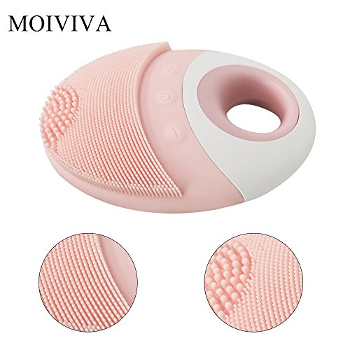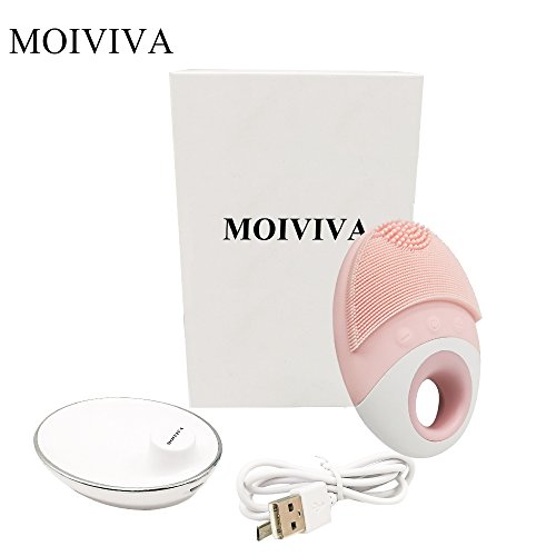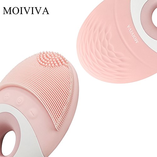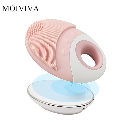MOIVIVA Facial Cleanser Silicosne Face Brush Waterproof Rechargeable Portable Sonic Pore Cleansing Face Cleanser, Massage Brush (Pink)