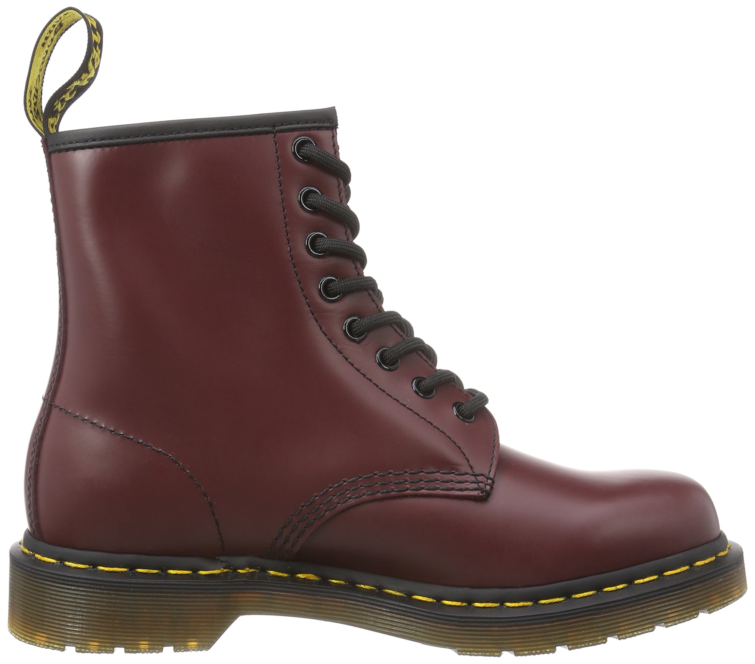 The symbolic presence of Dr. Martin, 1460, features an exclusive smooth leather upper with a soft touch, a classic 8 hole, a pull tab of Dr. Martin's yellow logo, and our icon with a very comfortable AirWair sole