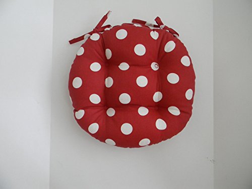 -. Title : Indoor / Outdoor Round Tufted Bistro Cushion with Ties - Red and White Polka Dot Fabric - Choose Size