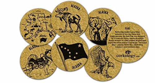 Corkology Alaska Map Coaster Set, Cork