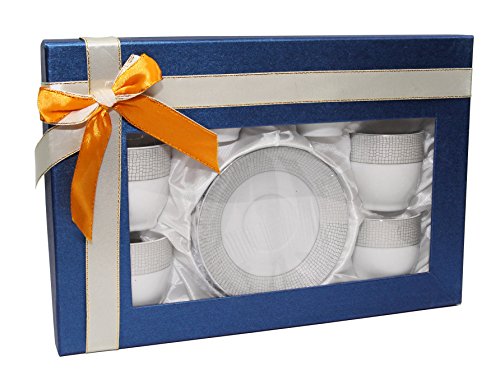 -. Feature : Six 4-Ounce Cups and Six Saucers / 12-piece Miniature Coffee Set / Silver-Plated, Elegant Crocodile Design / Sold in Solid Blue Gift-Box / Makes a unique and sophisticated gift
