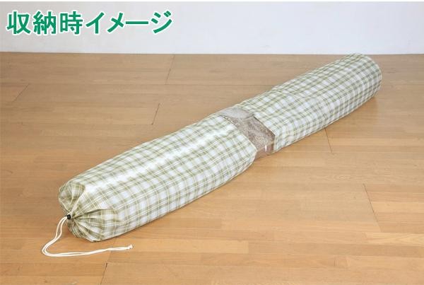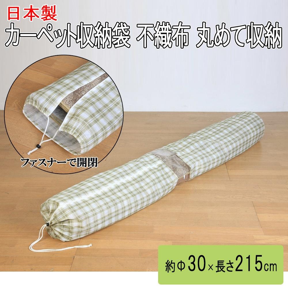| シーズンオフになったカーペットを折らずに収納でき、ベッドの下などのデッドスペースに収納できます。通気性の良いポリエステル不織布を使用しているので、保管中もカーペットに湿気がこもりません。また、ポリプロピレン不織布に比べて滑りが良いので毛足の長いカーペットの出し入れにも効果的です。 |