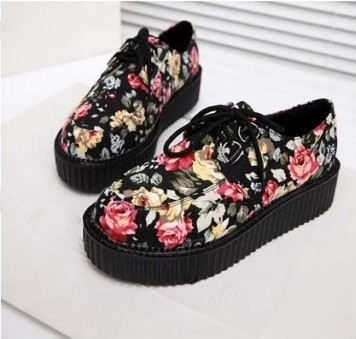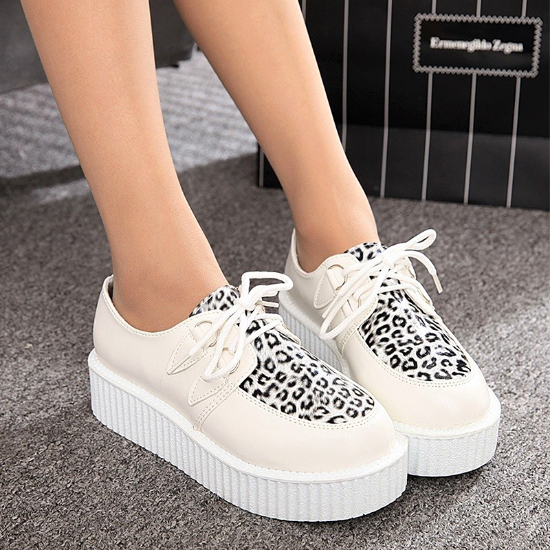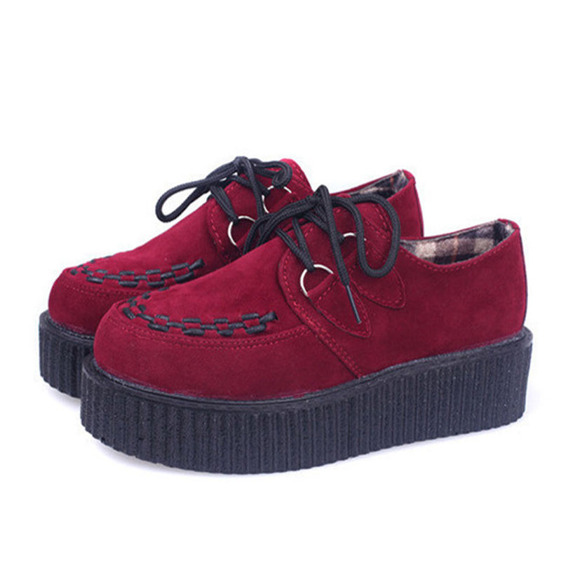 Creepers Shoes Woman Lace Up Flats Shoes Creepers Platform Shoes Black Plus Size 40 41
