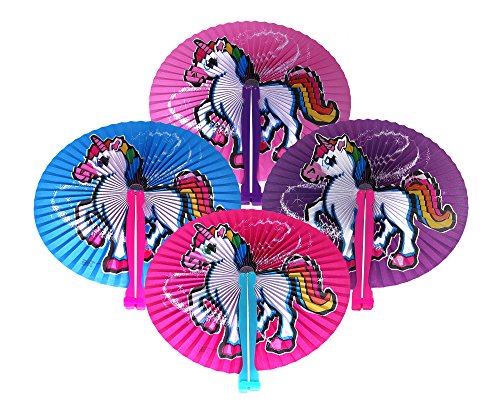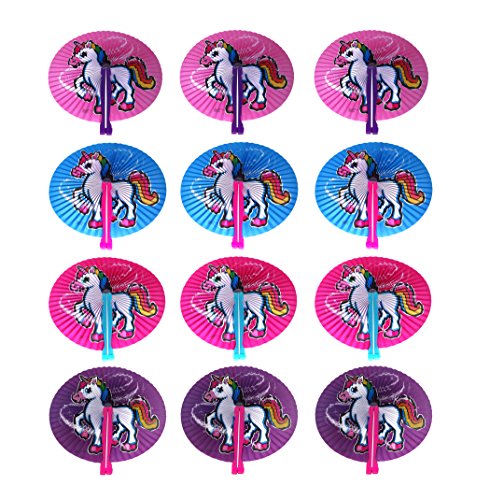 Paper Folding Fans - Pack Of 12 Brightly Colored Unicorn Fans