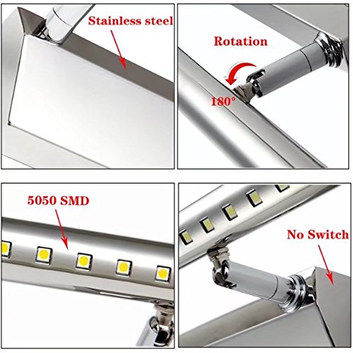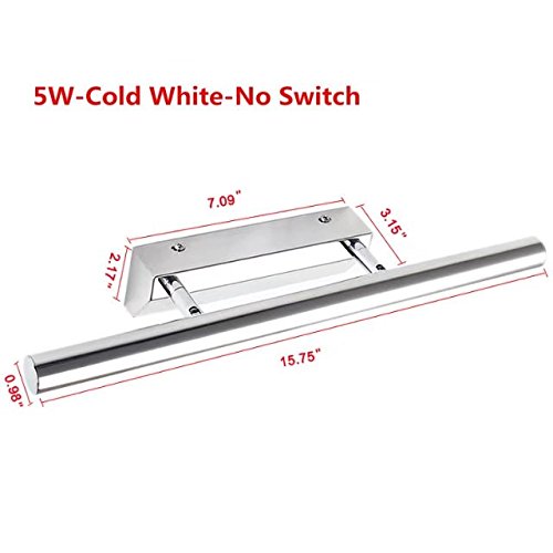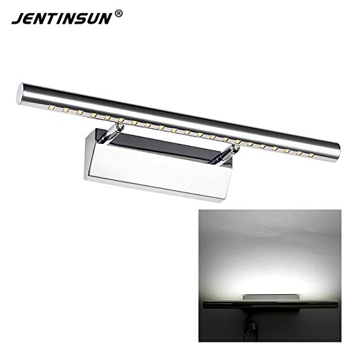 Jentinsun 5W LED Bathroom Vanity Mirror Front Wall Light Lighting Fixtures Mounted Sconces Lamp Modern Waterproof Anti-fog for Make-up Bedroom Cabinet, Stainless Steel, Cold White, No Switch