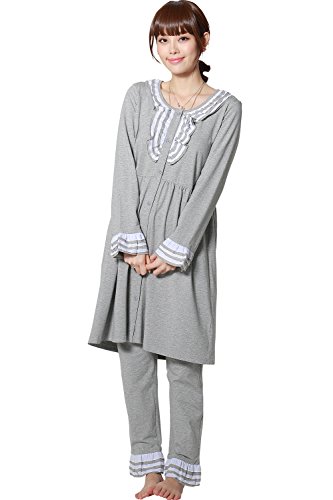 -. Feature : 【大人気!】【新色追加!】ツートーンフリルが大人顔♪パジャマっぽくないおしゃれナイティ / 【授乳機能付き】胸元のボタンを外し、インの授乳レイヤーをずらして授乳します。授乳レイヤーは取り外せるタンクトップ型。(実用新案登録済み) / 【ウエスト調節アジャスターつき】ボトムのゴム入りウエストで出産前後のサイズ変化にも対応。 / 品質:綿95%, ポリウレタン5%[別布]コットン100% / サイズ(cm): M[ワンピース]肩幅36,バスト96,裾幅66,着丈90,袖丈57,腹囲-100 [パンツ]総丈96,ウエスト-90,腹囲-100,股上30,股下69 [インナー]肩幅35,バスト92/ L[ワンピース]37.5,100,69,92,58,-104 [パンツ]98,-94,-104,30.5,70.5 [インナー]36.5,96