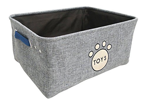 Winifred & Lily Pet Toy and Accessory Storage Bin, Organizer Storage Basket for Pet Toys, Blankets, Leashes and Food in embroidered “Toys in a paw", Grey