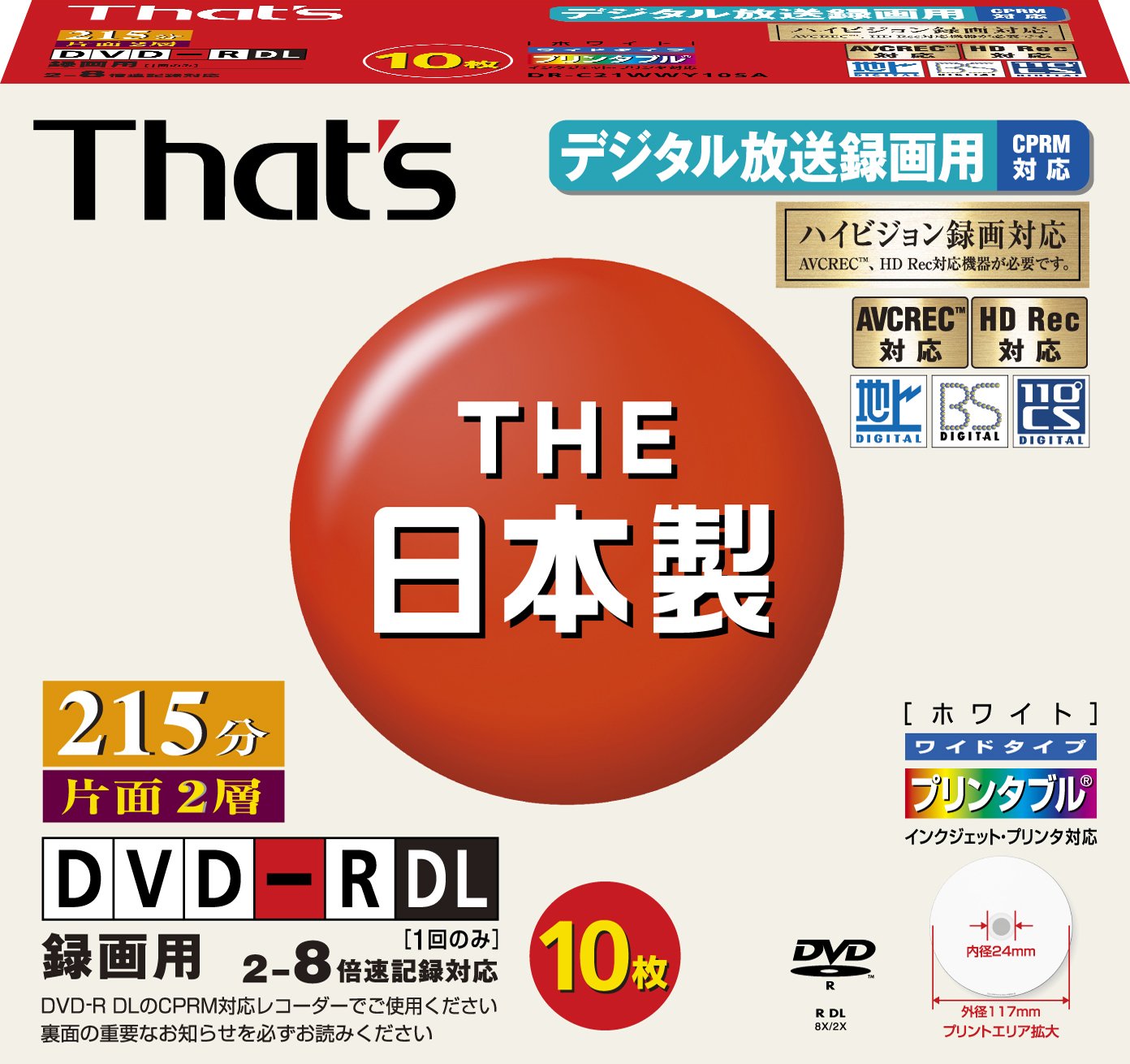 Taiyo Yuden made That s DVD-R video for CPRM corresponding 8X 215 minutes 8.5GB 10 sheets single-sided dual-layer wide printable 5mmP case enter DR-C21WWY10SA