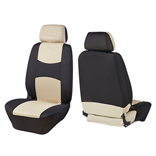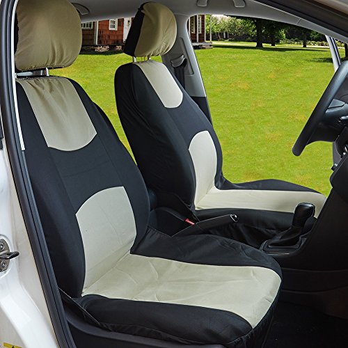Urlifehall BLACK/Charcoal BEIGE Car Seat Cover Mats Full Set(Fit Most Car, Truck, Suv, or Van)