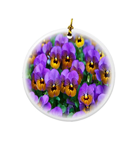 Rikki Knight Purple Pansies Design Round Porcelain Two-Sided Christmas Ornaments