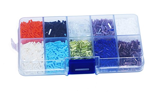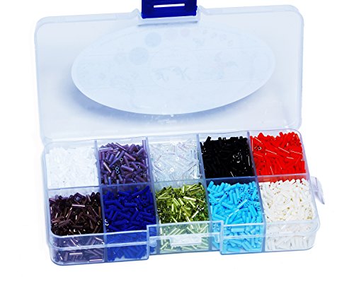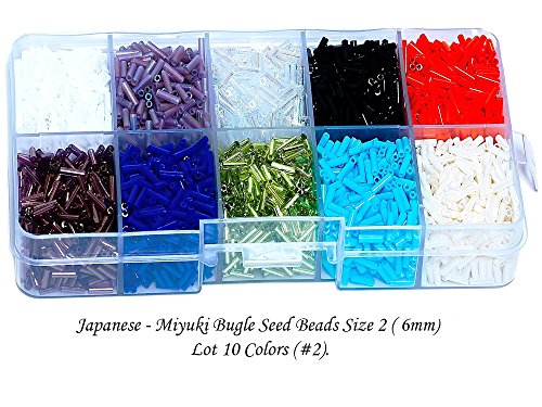 Japanese - MIYUKI Bugle Seed Beads 125g, Size 2 (6mm) - 10 Colors with Storage Box (#2)