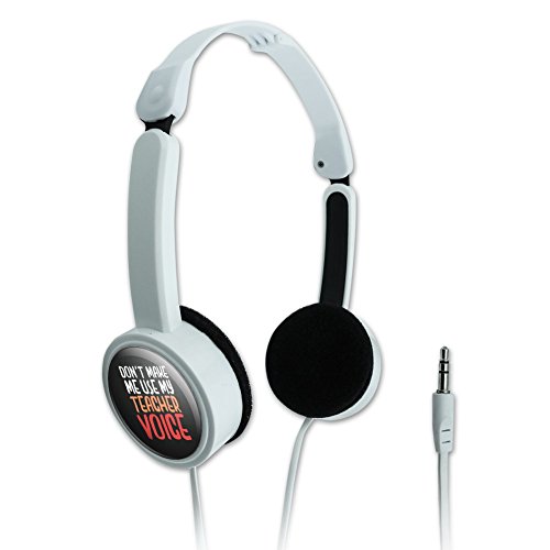 -. Binding : Electronics -. Brand : Graphics and More -. Color : white -. Feature : Enjoy your audio entertainment on the go with these lightweight on-ear headphones. These compact novelty headphones feature a folding design for ease of travel, while the plastic headphone housing avoids adding unnecessary weight to your gym bag or purse. / The ear pieces are cushioned for comfort, and the adjustable head band size makes them appropriate for youngsters and adults alike. / The decorative graphic on the exterior of the ear pieces is printed on high-quality vinyl, and resin-topped, to avoid fading or scratching. / A funny design for the teacher in your life! / A Graphics and More product. -. Label : Graphics and More -. Manufacturer : Graphics and More -. MPN : HPHONE.WHT.Z000692 -. NumberOfItems : 1 -. PackageQuantity : 1 -. PartNumber : HPHONE.WHT.Z000692 -. ProductGroup : CE -. ProductTypeName : CONSUMER_ELECTRONICS -. Publisher : Graphics and More -. Studio : Graphics and More -. Title : Don't Make Me Use My Teacher Voice Funny Novelty Travel Portable On-Ear Foldable Headphones