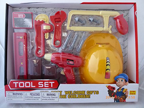 You child will love playing like a builder to repair items around the house. Set includes toy hard hat with tools and accessories. 14 pieces.