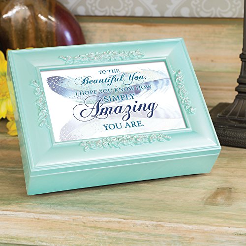-. Binding : Kitchen -. Brand : Cottage Garden -. Color : Mint Green Pearlescent -. EAN : 0633303838584 -. Feature : Embossed rose detail with high gloss finish adds a touch of glamour to your vanity or bedroom accents / Hinged lid will stay open when looking for treasures and jewelry. Replace artwork with a 4 x 6 inch personal photo / Plenty of space inside to keep your treasures organized; Includes ring holders and a spacious open cavity for bracelets and necklaces / Lined with black velvet material; Cushioned bun feet to prevent scratching table top surfaces / Carefully wrapped in protective packaging and fitted box -. Label : Cottage Garden -. Manufacturer : Cottage Garden -. MPN : SHMB37GG -. PackageQuantity : 1 -. PartNumber : SHMB37GG -. ProductGroup : Home -. ProductTypeName : HOME -. Publisher : Cottage Garden -. Size : 6 x 8 -. Studio : Cottage Garden -. Title : Beautiful You Simply Amazing Mint Green Pearlescent Decorative Jewelry Keepsake Box -. UPC : 633303838584