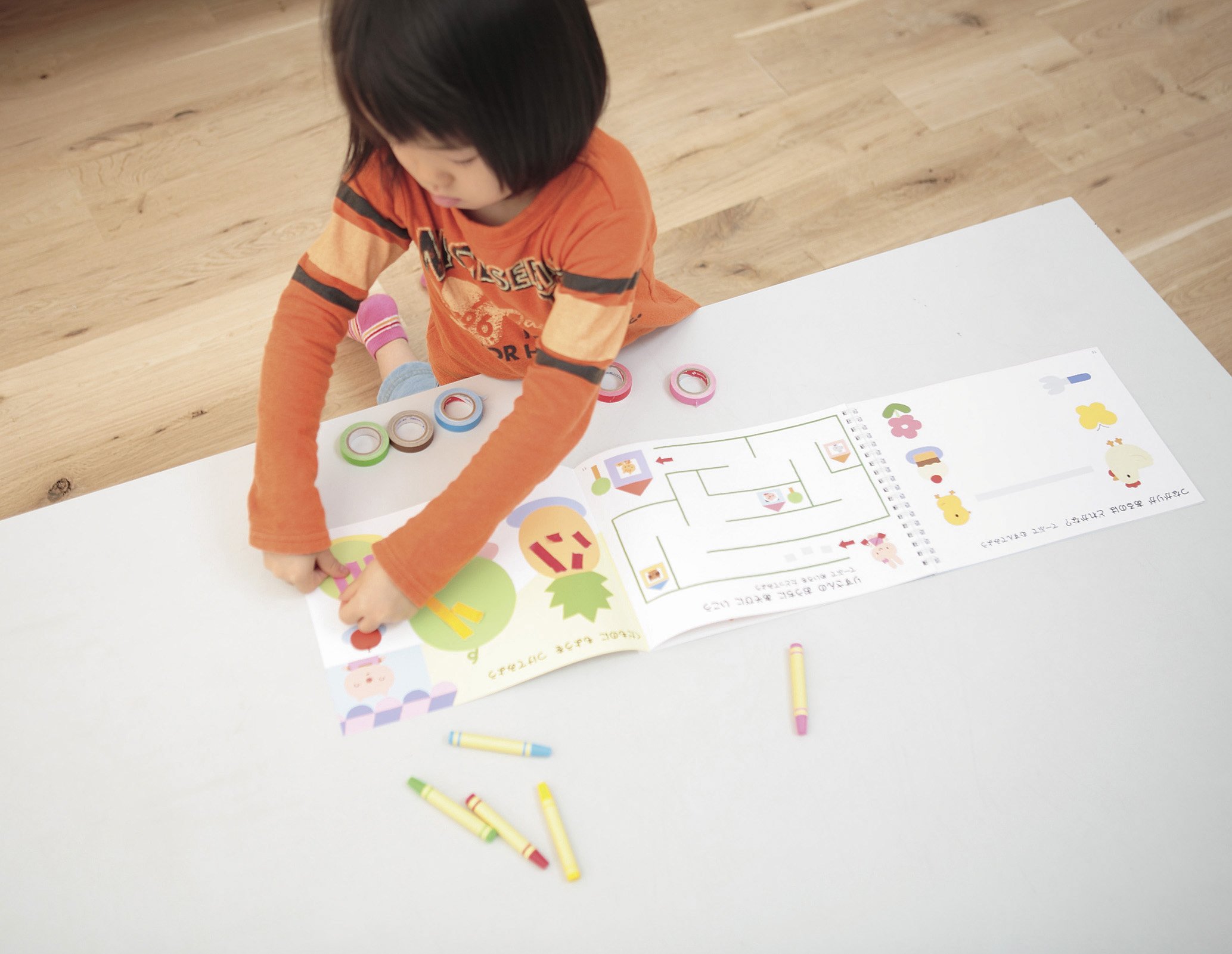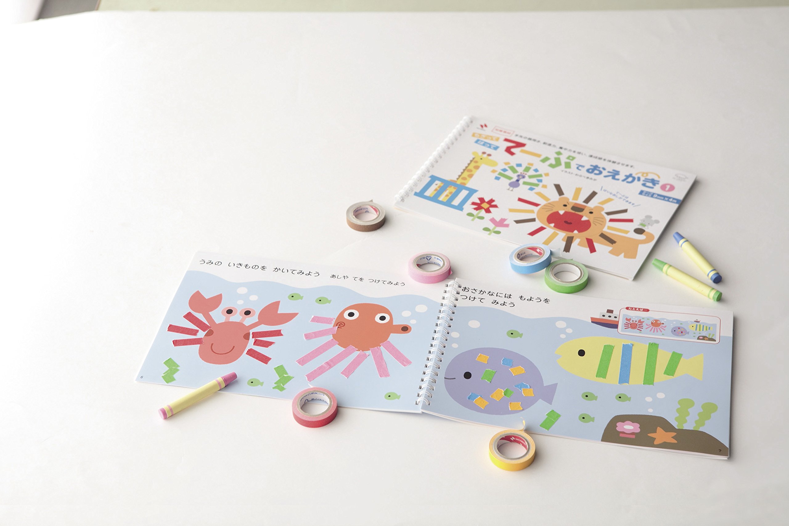 A new type of educational tool that draws pictures in cute picture books with colorful tape.