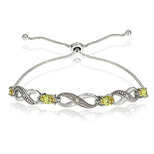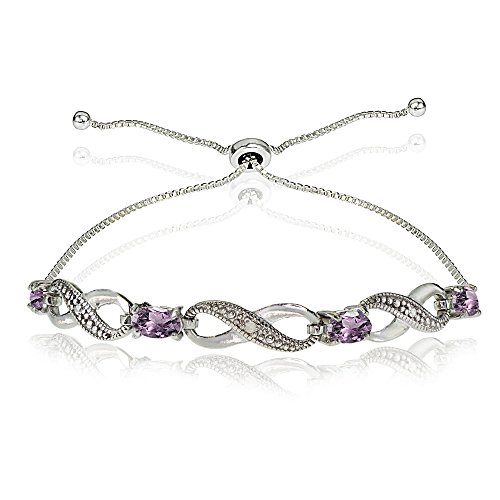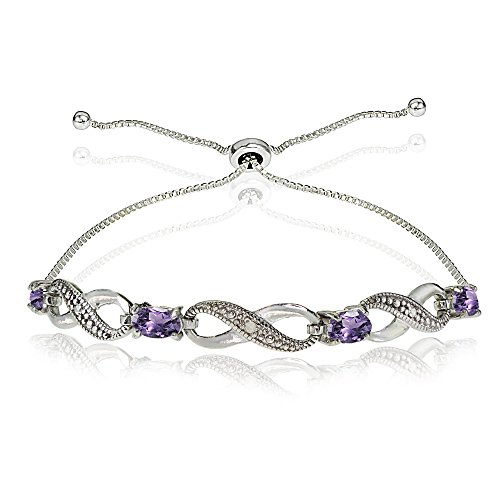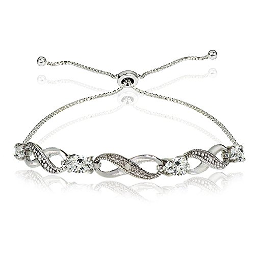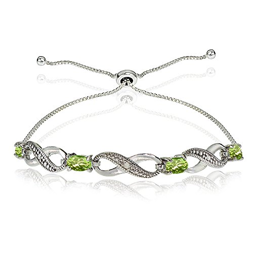This attractive bracelet showcases 5x3mm genuine, simulated, or created gemstones set between sparkly infinity designs. This bracelet adjusts from 3 inches up to 10 inches long and is crafted of fine sterling silver.