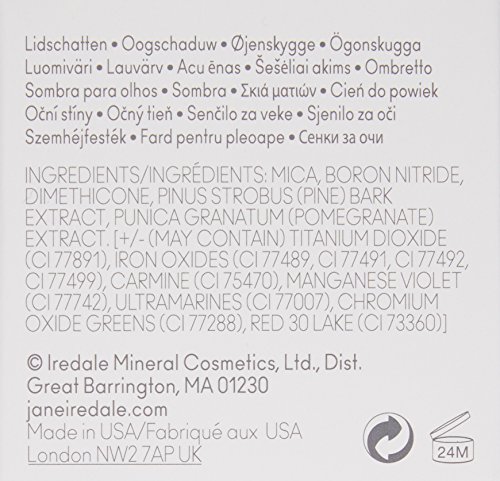 A mineral-based pressed eye shadow designed to enhance the color and shape of the eye. Can be used wet or dry. Gentle and safe for sensitive eyes. Highly pigmented, crease-resistant and long-lasting. Key ingredients include boron nitride to help shadow adhere and glide easily, as well as diffuse light, and pine bark extract for protecting skin and calming inflammation.Feature
