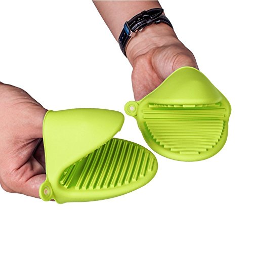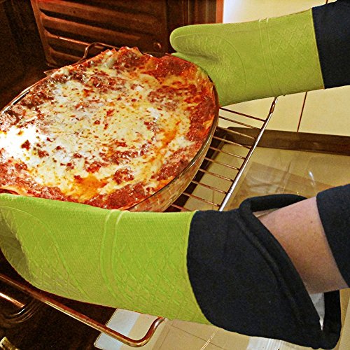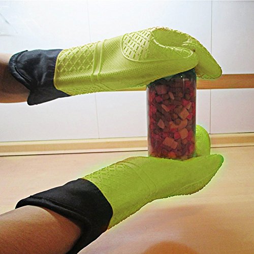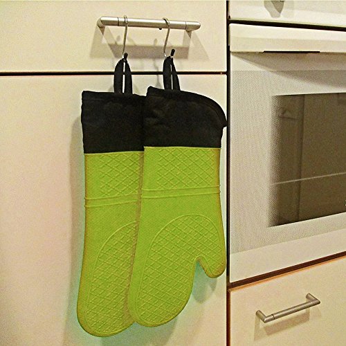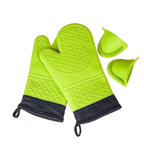 AKLUER 1 Pair of Silicone Heat Resistant Oven Heat Insulation Gloves with Non-slip cotton lining and Include Oven Mini Mitt,set of 2 (Green)