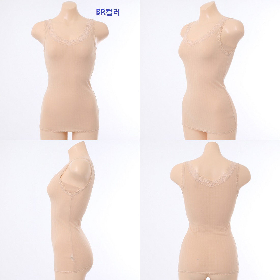 앞,뒤 목둘레 라인은 고급스럽고 부담스럽지 않은 소폭의 레이스로 처리하여