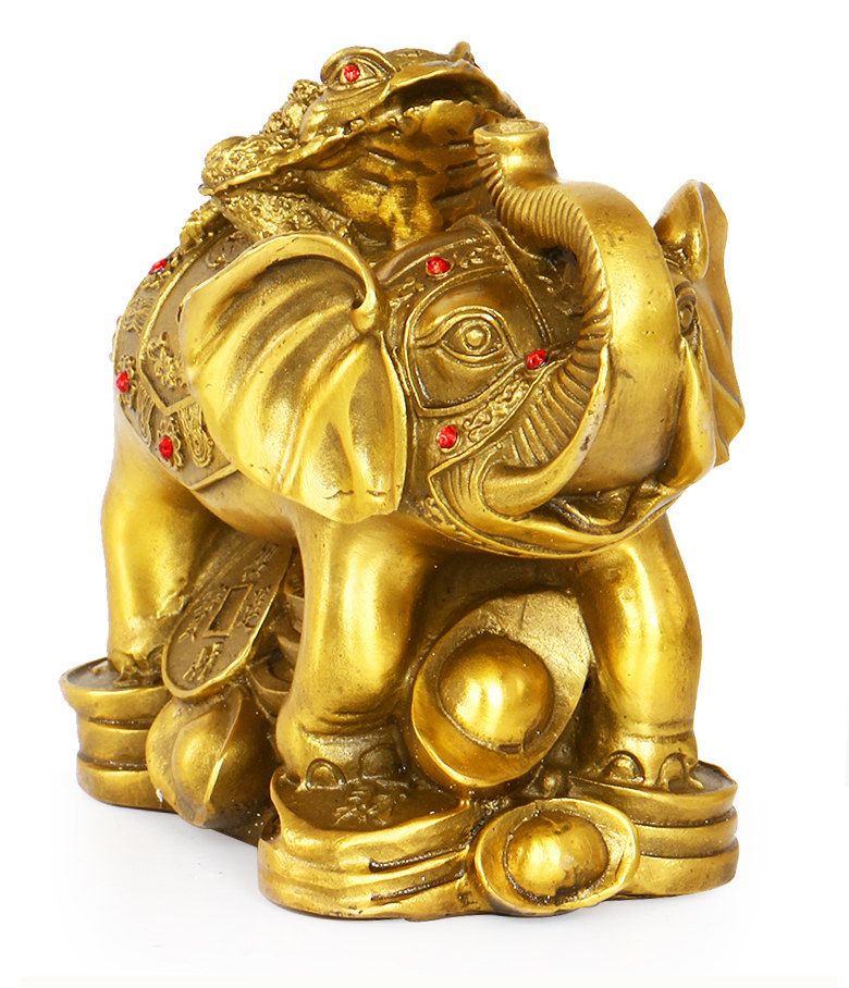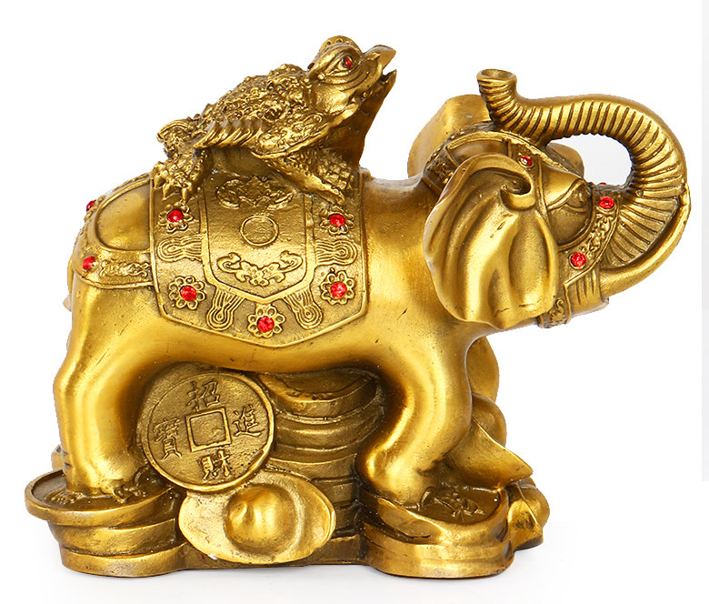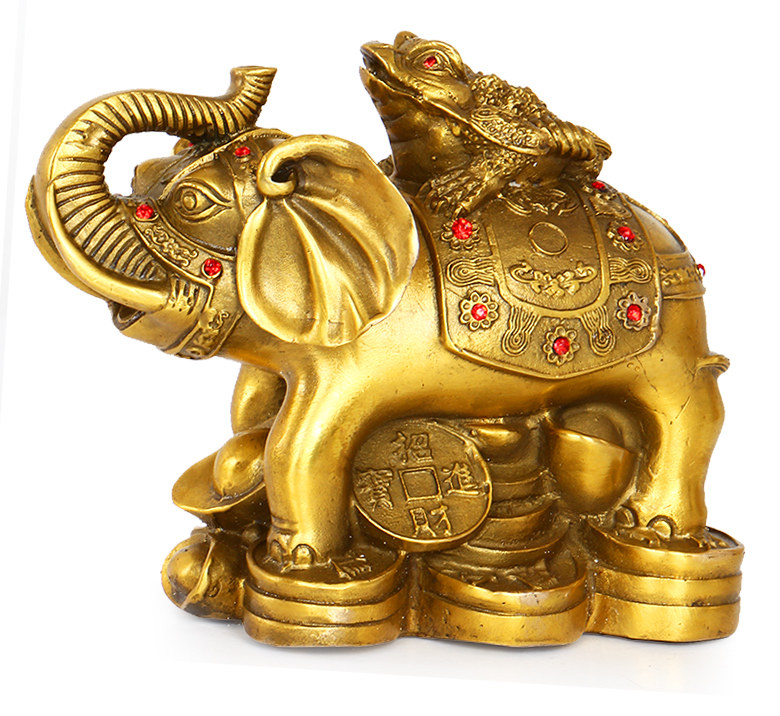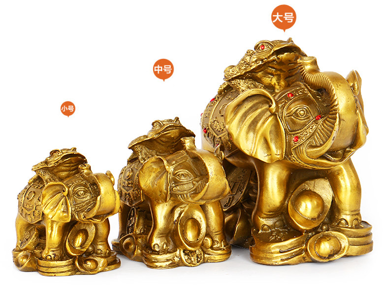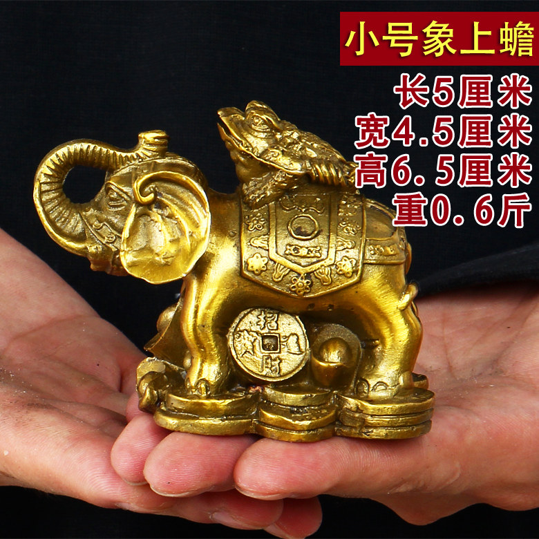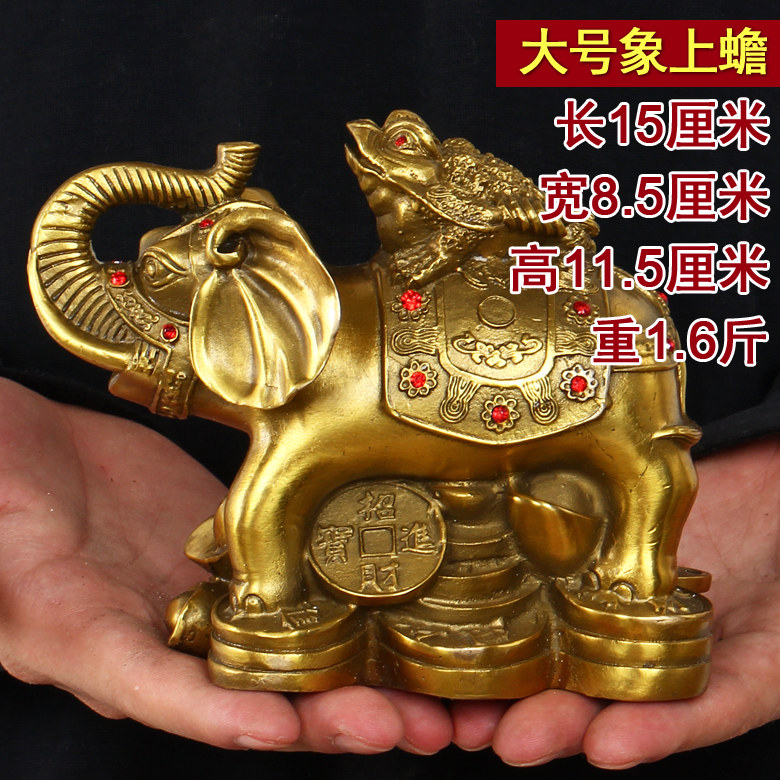 开光富贵荣华纯黄铜象上金蟾 招财旺财大象元宝金蝉风水摆件大号