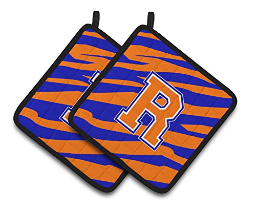 Caroline's Treasures Monogram Initial R Tiger Stripe - Blue Orange Pair of Pot Holders CJ1023-RPTHD, 7.5HX7.5W, Multicolor