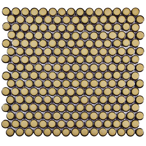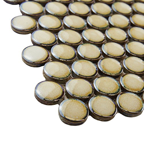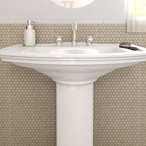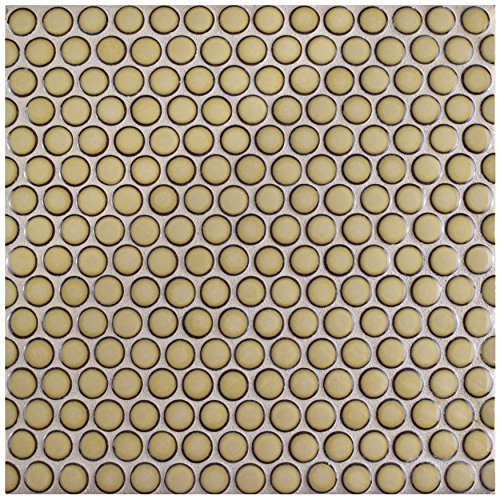 SomerTile FKOMPR73 Penny Caffe Porcelain Mosaic Floor and Wall Tile, 12" x 12.625", Beige/Cream