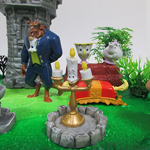 Title : Beauty and the Beast and Friends Deluxe Birthday Cake Topper Set Featuring Figures and Decorative Themed Accessories