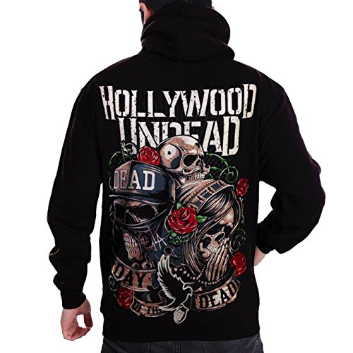 (Stand-Zone)/Women/T-Shirts/DIRECT FROM USA/Hollywood Undead Day Of The Dead Mens Black Zippered Hooded Sketched Graphic