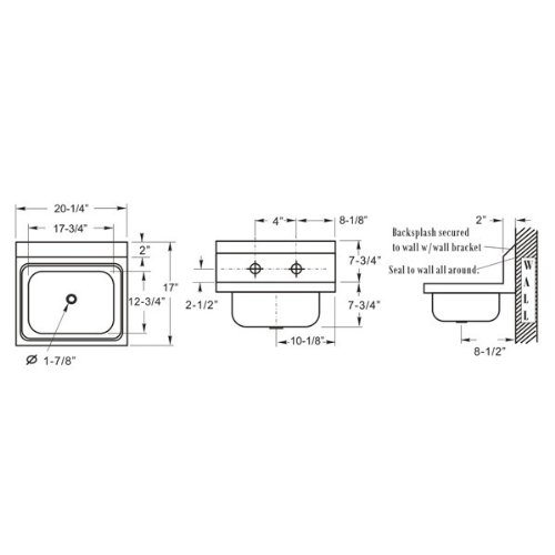 ACE Extra Wide Wall Mount Hand Sink, 20-1/4"(W) x 17''(L)x 7-1/4"(D) Bowl